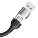 Tento kabel je kombinací odolnosti a elegance, přičemž jeho silnou stránkou jsou hliníkové koncovky vyrobené z vysoce kvalitního hliníku. Eloxování zvyšuje jejich odolnost vůči poškrábání a korozi, čímž zajišťuje dlouhodobý estetický vzhled. Ergonomický tvar usnadňuje pevný úchop a precizní připojení, zatímco kovové pouzdro efektivně odvádí teplo, což zaručuje stabilní a bezpečné nabíjení i přenos dat.