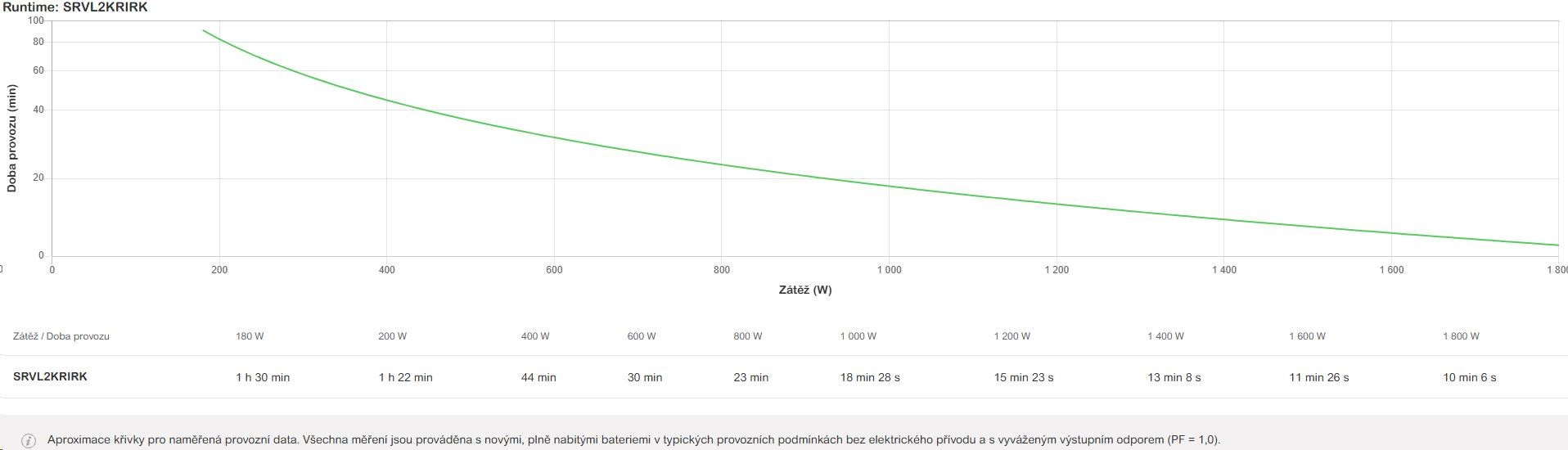 | Doba provozu pro zátěž WMin.–max.: 180-1800 W | 10min 6s |