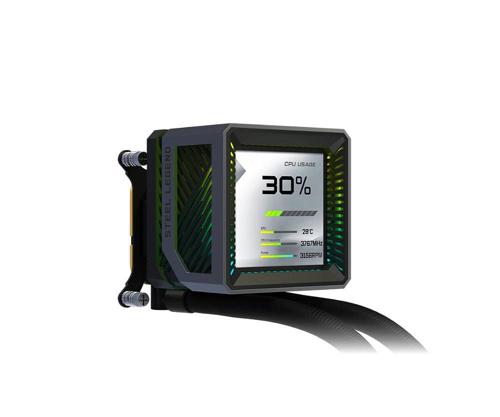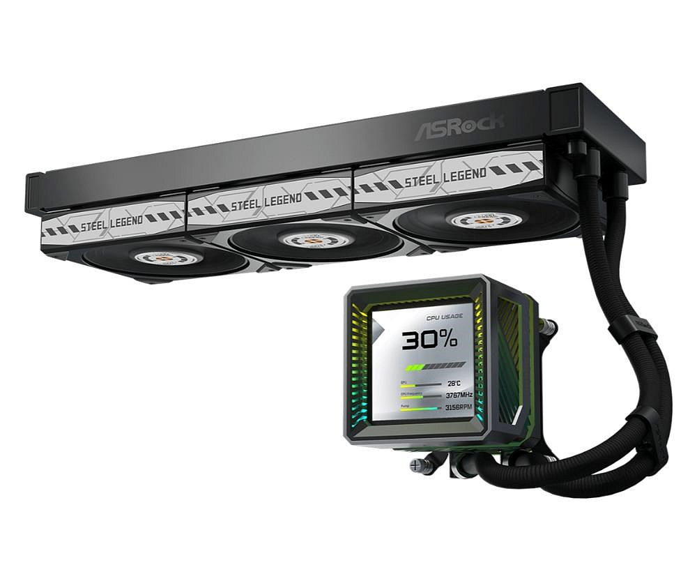 ASROCK Vodní chladič Steel Legend Dark 360 LCD, 3x120mm, LGA1851, AM5, černá