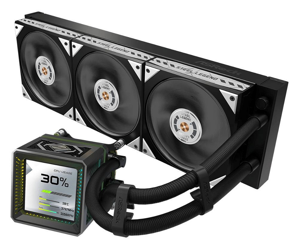 Diskuze k produktu ASROCK Vodní chladič Steel Legend Dark 360 LCD, 3x120mm, LGA1851, AM5, černá