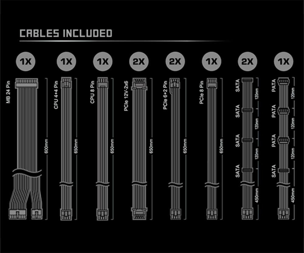 | PCIe 12V-2x6 Konektor | 2x / 1x (700 mm) |