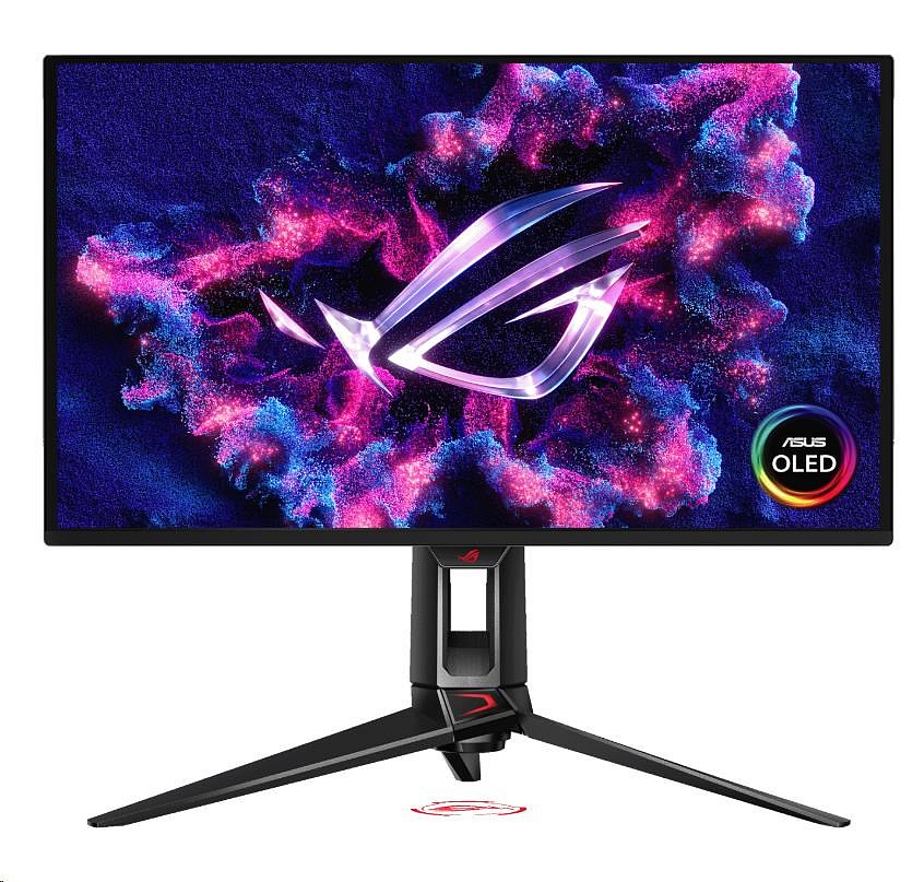 Herní monitor ROG Swift OLED PG27UCDM – 27palcový (26,5palcový viditelný) 4K Tandem QD-OLED panel, 240 Hz, 0,03 ms (GTG), OLED Anti-Flicker 2.0, vlastní chladič, OLED Care Pro, Neo Proximity Sensor, kompatibilní s G-SYNC®, VESA DisplayHDR™ 400 True Black, rovnoměrný jas, 99 % DCI-P3, skutečná 10bitová barva, DisplayWidget Center, DisplayPort™ 2.1a UHBR20 (plná šířka pásma 80 Gb/s)