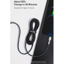 Flexibilní a odolný kovový kabel Baseus Cafule s konektory USB-C a Lightning vám umožňuje přenášet data a nabíjet baterii v zařízeních Apple.