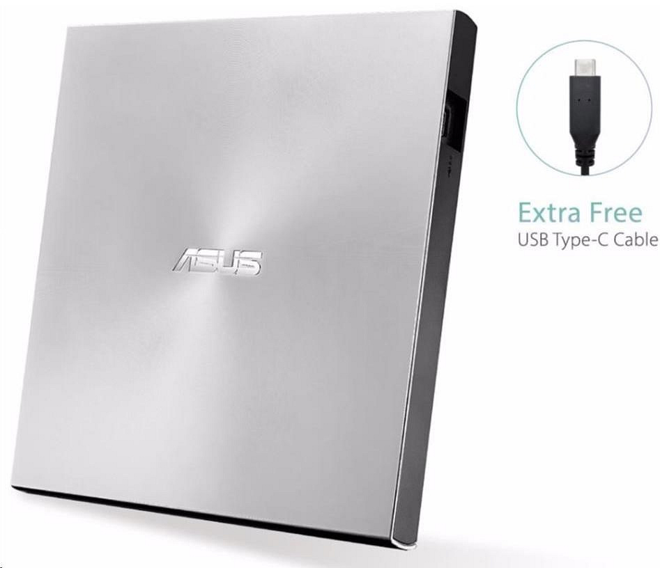 BAZAR ASUS DVD ZenDrive SDRW-08U9M-U SILVER, External Slim DVD-RW, USB Type-C/Type-A, M-DISC (POŠKOZENÝ OBAL)