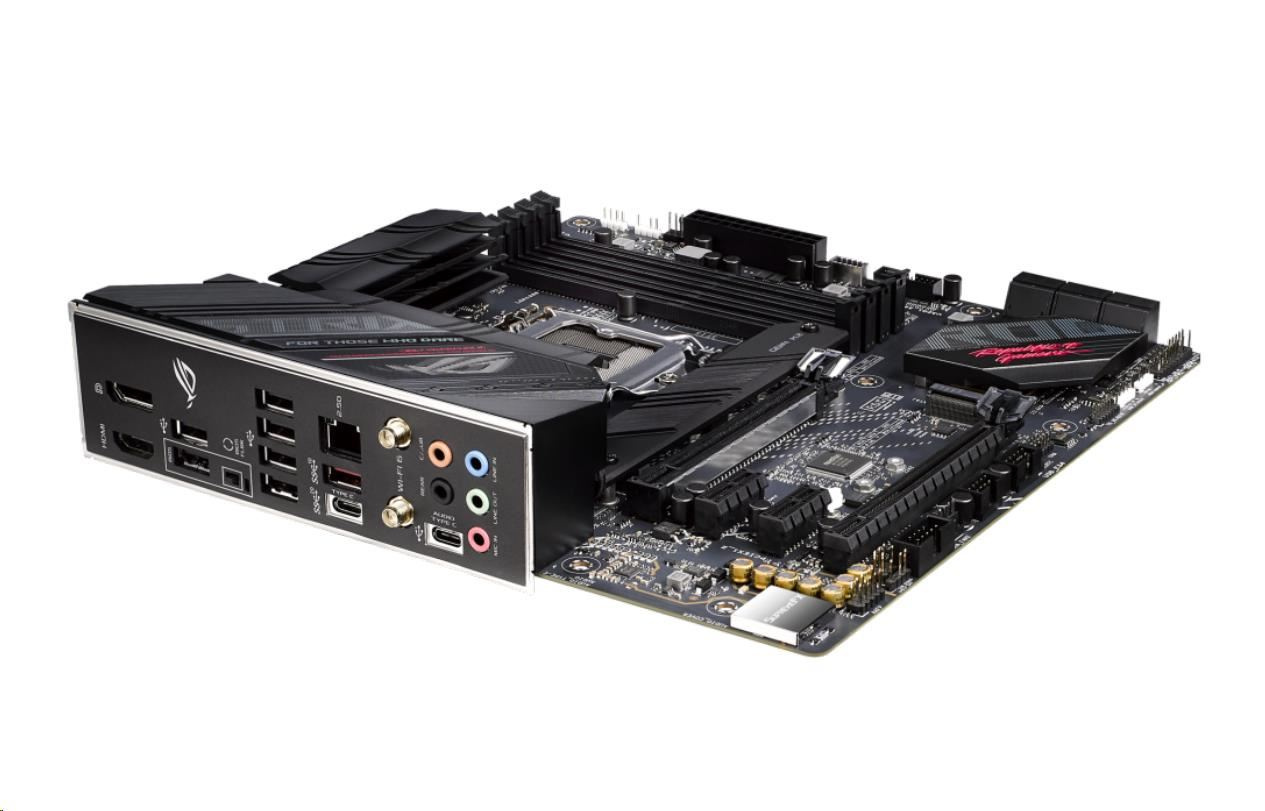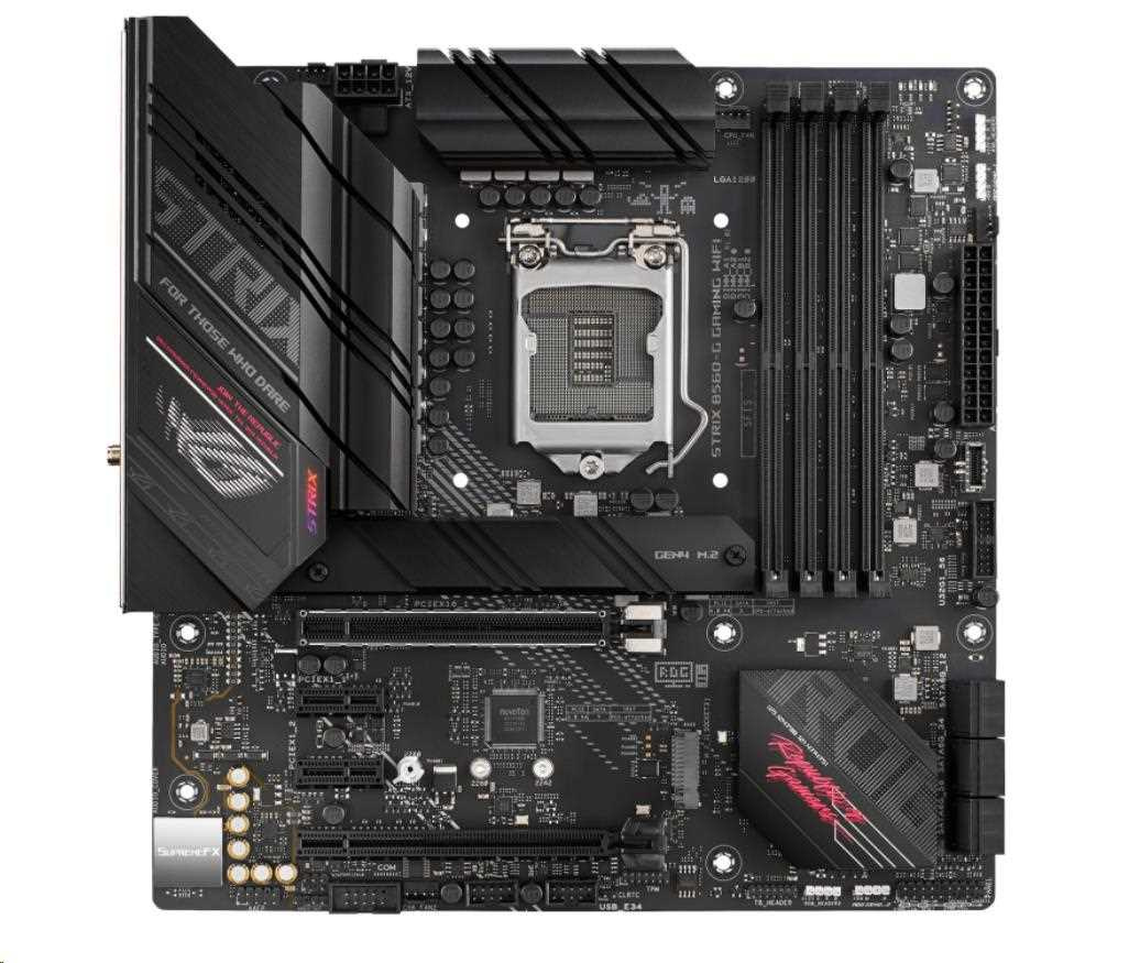 Intel® B560 LGA 1200 micro ATX motherboard with PCIe 4.0, 8+2 teamed power stages, Two-Way AI Noise Cancelation, WiFi 6 (802.11ax), Intel® 2.5 Gb Ethernet, Two M.2 slots with one slot featuring its own heatsink, USB 3.2 Gen 2x2 USB Type-C® , SATA and Aura Sync RGB lighting