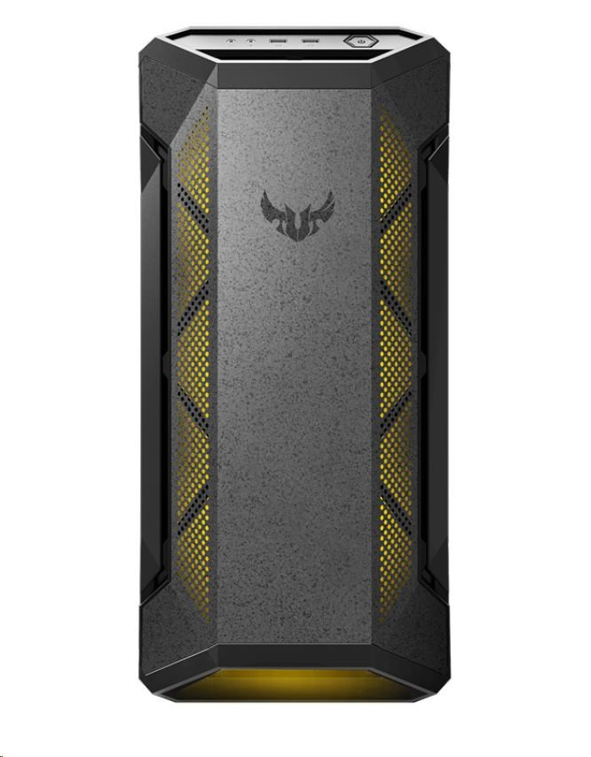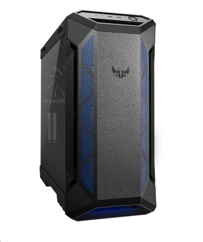 ASUS TUF Gaming GT501 case supports up to EATX with metal front panel, tempered-glass side panel, 120 mm RGB fan, 140 mm PWM fan, radiator space reserved, and USB 3.1 Gen 1