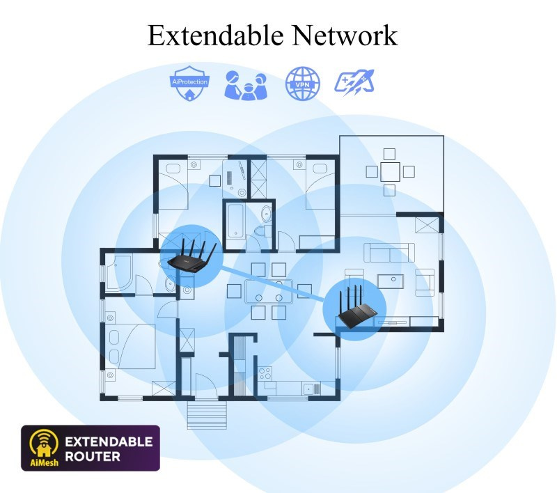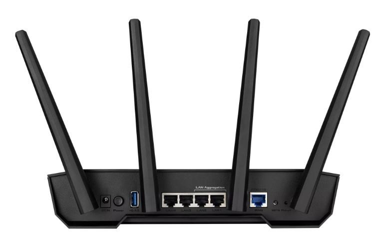 TUF Gaming AX3000 V2 Dual Band WiFi 6 Gaming Router with Mobile Game Mode, 3 steps port forwarding, 2.5Gbps port, AiMesh for mesh WiFi, AiProtection Pro network security Ultrafast WiFi 6 - Enjoy speeds up to 3000 Mbps and 4X network efficiency with OFDMA and 160 MHz channels. True Multi-Gigabit wired speeds - Aggregated 2 Gigabit LAN connections, wired 2.5Gbps port and WiFi 6. Easy Port Forwarding in 3 Steps - Open NAT makes port forwarding simple, eliminating frustrating and complicated manual configuration. ASUS AiMesh Support – Create a flexible, seamless whole-home mesh network with AiMesh-compatible routers. Tested Durability and Stable Operation - TUF Gaming AX3000 V2 is built to be durable and undergoes verified testing to ensure reliable, stable operation. 802.11a : up to 54 Mbps 802.11b : up to 11 Mbps 802.11g : up to 54 Mbps WiFi 5 (802.11ac) (1024QAM) : up to 867 Mbps WiFi 6 (802.11ax) (2.4GHz) : up to 574 Mbps WiFi 6 (802.11ax) (5GHz) : up to 2402 Mbps 2.4GHz 2x2 5GHz 2x2 RJ45 for 2.5 Gigabits BaseT for WAN x 1, RJ45 for Gigabits BaseT for LAN x 4, USB 3.2 Gen 1 x 1,. , ,