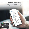 • Technologie ASUS AiMesh zvyšuje pokrytí až na 6500 čtverečních stop (3 balení) a snadná rozšiřitelnost pomocí kompatibilních routerů ASUS pro bezproblémové a bezpečné WiFi v celé domácnosti
