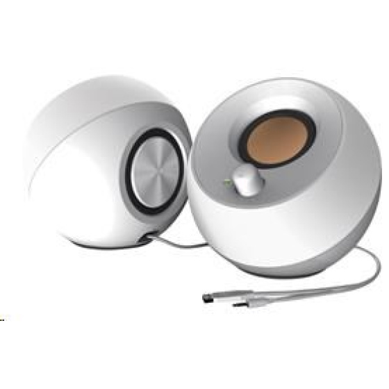 Kulovitý reproduktor Creative Pebble, inspirovaný zenovou japonskou skalkou, je moderní a elegantní 2.0 reproduktorový systém, který představuje ideální doplněk každé domácnosti a kanceláře. Zvukové pole s náklonem 45° zajišťuje vylepšené šíření zvuku. Napájení zajišťuje jediný USB kabel pro bezstarostnou zábavu.