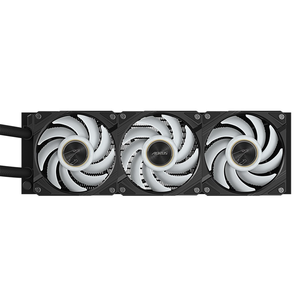 • Vodní blok a ventilátor mají gradientní osvětlení a osvětlení ventilátoru ARGB lze synchronizovat s ostatními zařízeními AORUS prostřednictvím GCC (GIGABYTE Control Center).