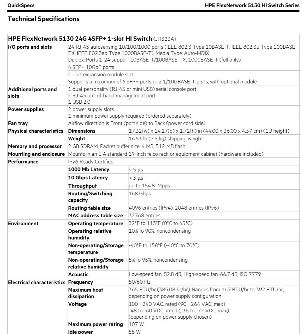 HPE FlexNetwork 5130 24G 4SFP+ 1-slot HI Switch (JH323A)