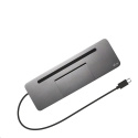 Ergonomická kovová dokovací stanice USB-C, která podporuje až 3 externí monitory. Stanice je kompatibilní s jakýmkoliv notebookem vybaveným portem USB-C nebo Thunderbolt 3 (60 cm integrovaný kabel je dostatečně dlouhý pro připojení všech notebooků s obrazovkou do velikosti 15“). Tento dok nabízí 4x USB port, spolehlivé a rychlé připojení do podnikové sítě díky integrovanému LAN portu a napájení až 85 W. Díky svému provedení je možné ji použít zároveň jako podstavec pro notebook.