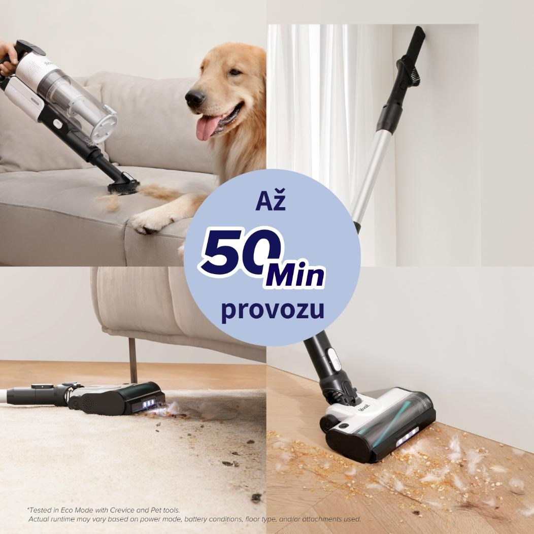 Vysavač je vybavený 180 W bezkartáčovým motorem, který pohání 2200 mAh baterie. Díky kombinaci moderního motoru a velké baterie je vysavač je tak nejen tichý, ale hlavně vydrží pracovat opravdu dlouho. Při běžném úklidu vydrží vysávat až 50 minut, a to stačí na úklid celého prostoru. Motor má 100.000 otáček a poradí si tak i s těžšími nečistotami jako je písek a jiný venkovní materiál.