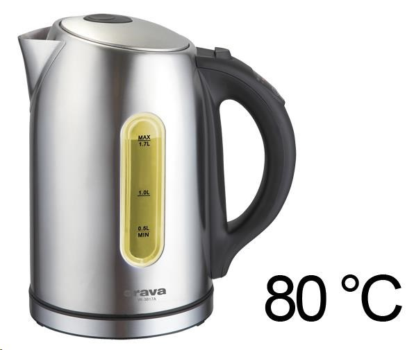 Nerezová rychlovarná konvice VK-3817 A s příkonem 2000 W a objemem 1,7 l. Konvice umožňuje elektronicky regulovat teplotu vody, zahřeje na předem zvolenou teplotu. Nastavení 5-ti různých teplot a stupnice se mění podle barev.