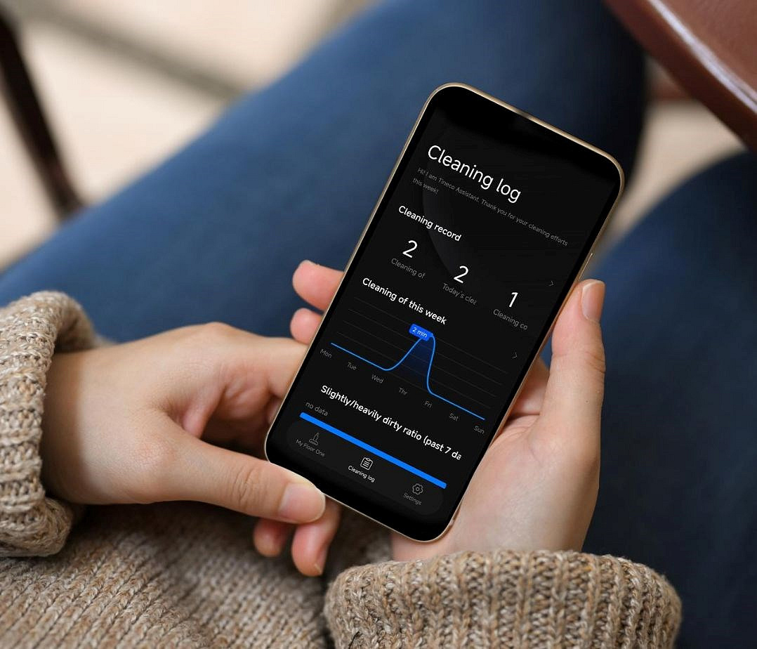 Mobilní aplikace sleduje výkon v reálném čase, nastaví upomínky a doporučení. Hlasový průvodce vás provede úklidem a pomůže využít všechny funkce naplno.