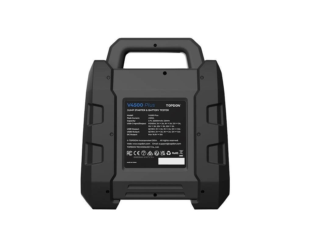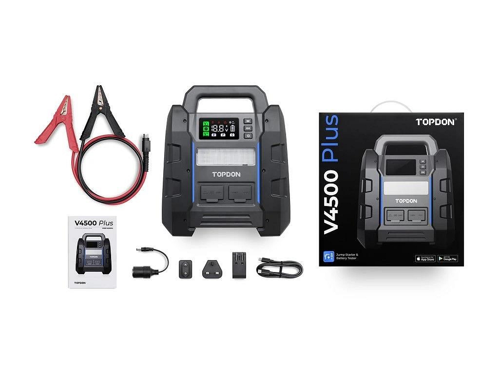 Popis BAZAR - TOPDON startér a tester autobaterie V4500 Plus - Poškozený obal (Komplet)