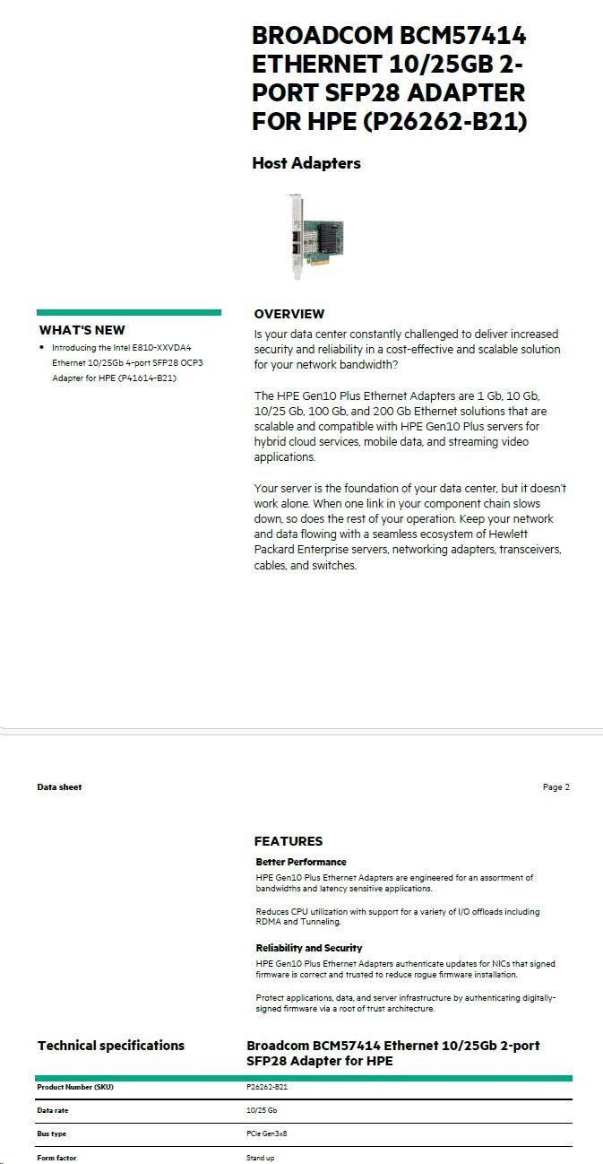 BCM 57414 10/25GbE 2p SFP28 Adptr.