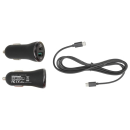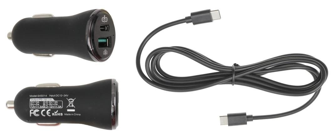 Cig-Plug Adapter, USB-A and USB-C interface, Quick Charger 3.0, 5V, 2.4A, incl.: USB-C to USB-C cablVíce