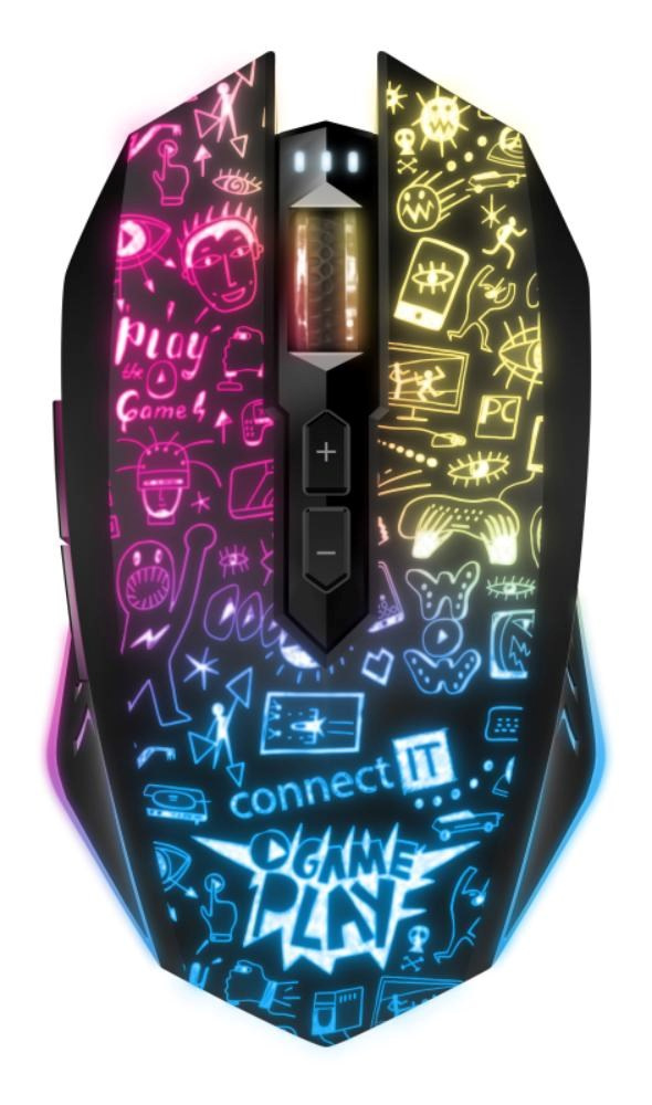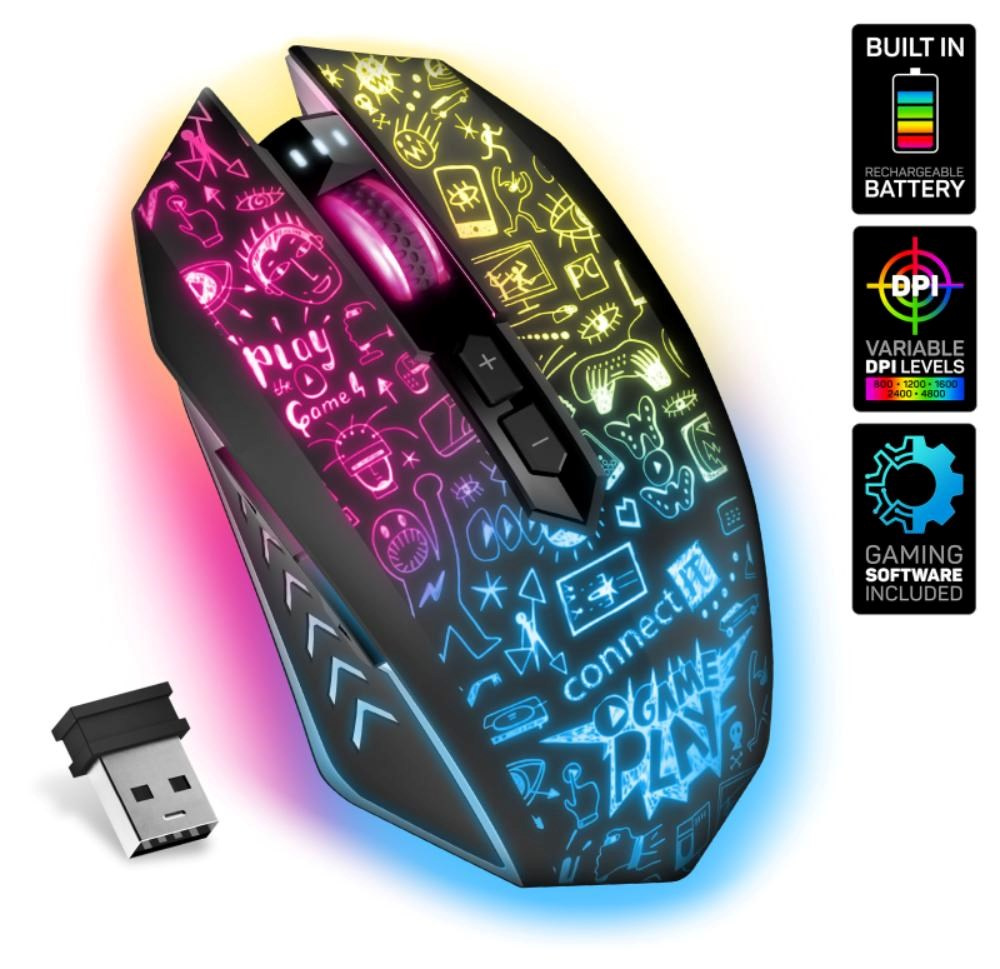 Precizní optický senzor má nastavitelnou citlivost až na 4800 DPI. Vysokou odolnost garantují špičkové mechanické spínače HUANO s životností 20 miliony kliknutí. Myš využívá technologii AutoPowerSave šetřící kapacitu baterie. Dodávaný SW s četnými nastaveními podporuje uživatelská makra, 5 uživatelských profilů a 6 programovatelných tlačítek včetně posuvného kolečka. Software je zdarma ke stažení na stránkách www.connectit-europe.com. Samozřejmostí je pozlacený USB Nano přijímač a dodávaný nabíjecí kabel.