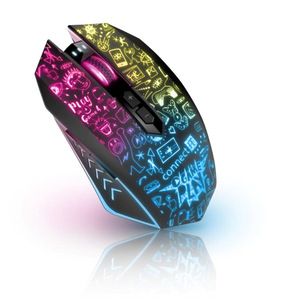 Profesionální bezdrátová gamingová myš DOODLE 2 PRO pro hráče počítačových her s Rainbow podsvícením těla i kolečka.