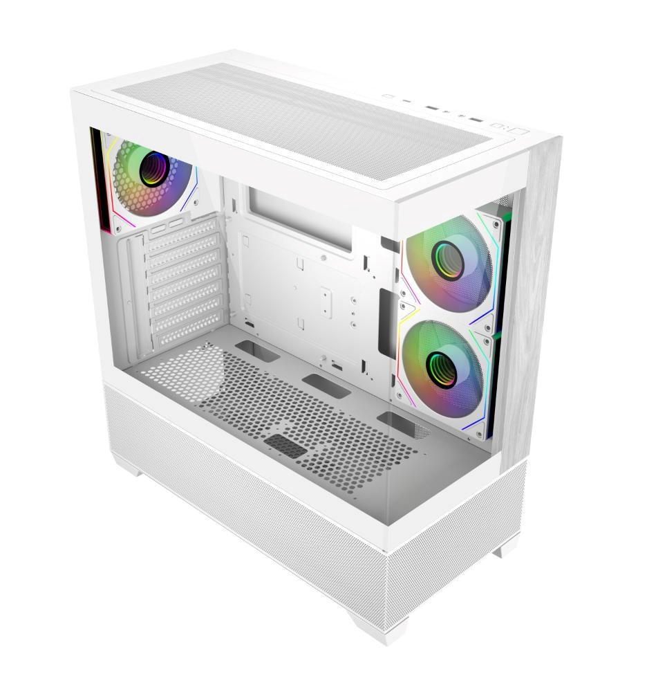 Provedení skříně:Midi Tower; Barva skříně:Bílé; Počet pozic 3.5" (HDD):1; Počet pozic 2.5" (SSD):1; Bočnice:Prosklená; Podsvícení:bez podsvícení; Vybavení PC skříně:Přední Audio panel, Přední USB panel, Průhledná bočnice.Více