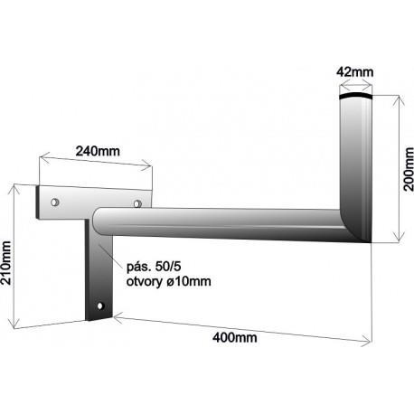 Držák antény na zeď, tvar T, žárový zinek, délka 40cm