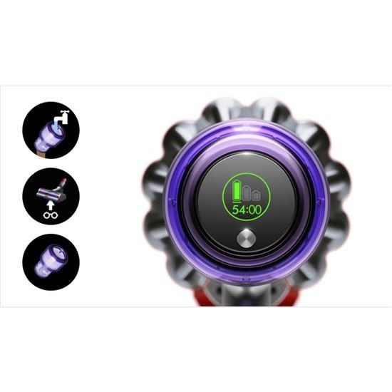 Integrovaný systém řízení výkonu Technologie společnosti Dyson optimalizující výkon a spouštěcí tlačítko šetřící akumulátor pomáhají maximalizovat dobu chodu použitím pouze takového výkonu, který potřebujete.