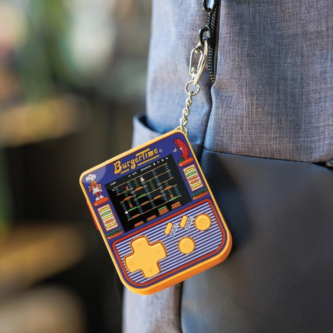 Retro hraní v mikro rozměrech díky klíčence Super Micro BurgerTime Keychain Gamer od HyperMegaTech! Dostatečně malé, abyste si ji mohli připnout ke klíčům a vzít kamkoli, ale i dostatečně velké, abyste si mohli zahrát. Obsahuje tři skvělé hry od Data East: BurgerTime, Karate Champ a Side Pocket. Dvoupalcová obrazovka RGB umožňuje maximální hratelnost a ovládání hlasitosti na tu správnou míru z ní dělá víc než jen cetku. Vyžaduje 3 baterie AAA (nejsou součástí balení).
