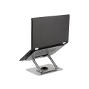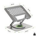 Základna tohoto podstavce měří 24 × 19 cm a na spodní straně má 4 protiskluzové silikonové patky, které drží celou konstrukci pevně na stole.