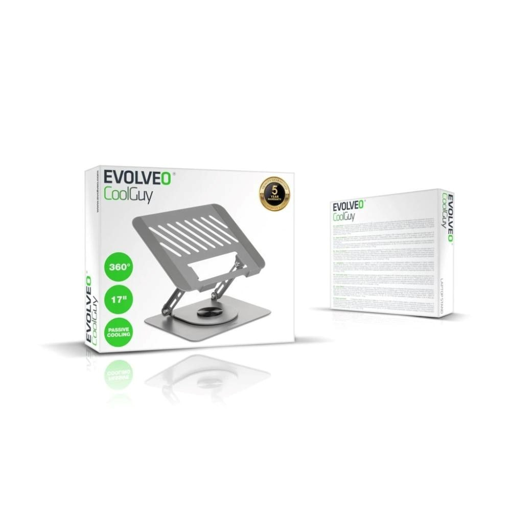 Podstavec pod notebook EVOLVEO CoolGuy je navržený pro vášnivé hráče i pro dříče, kteří u notebooku tráví dlouhé hodiny prací – ať už v kanceláři, doma, nebo na cestách. Stabilně udrží notebook nebo tablet do velikosti 17", zvedne obrazovku do příjemné výšky, umožní přesné natočení i sklopení a zároveň pomáhá notebooku dýchat díky promyšlenému pasivnímu chlazení. V praxi to znamená pohodlnější sezení, méně unavené oči, menší bolest zad a větší jistotu, že vás uprostřed důležitého úkolu neshodí přehřátý hardware.