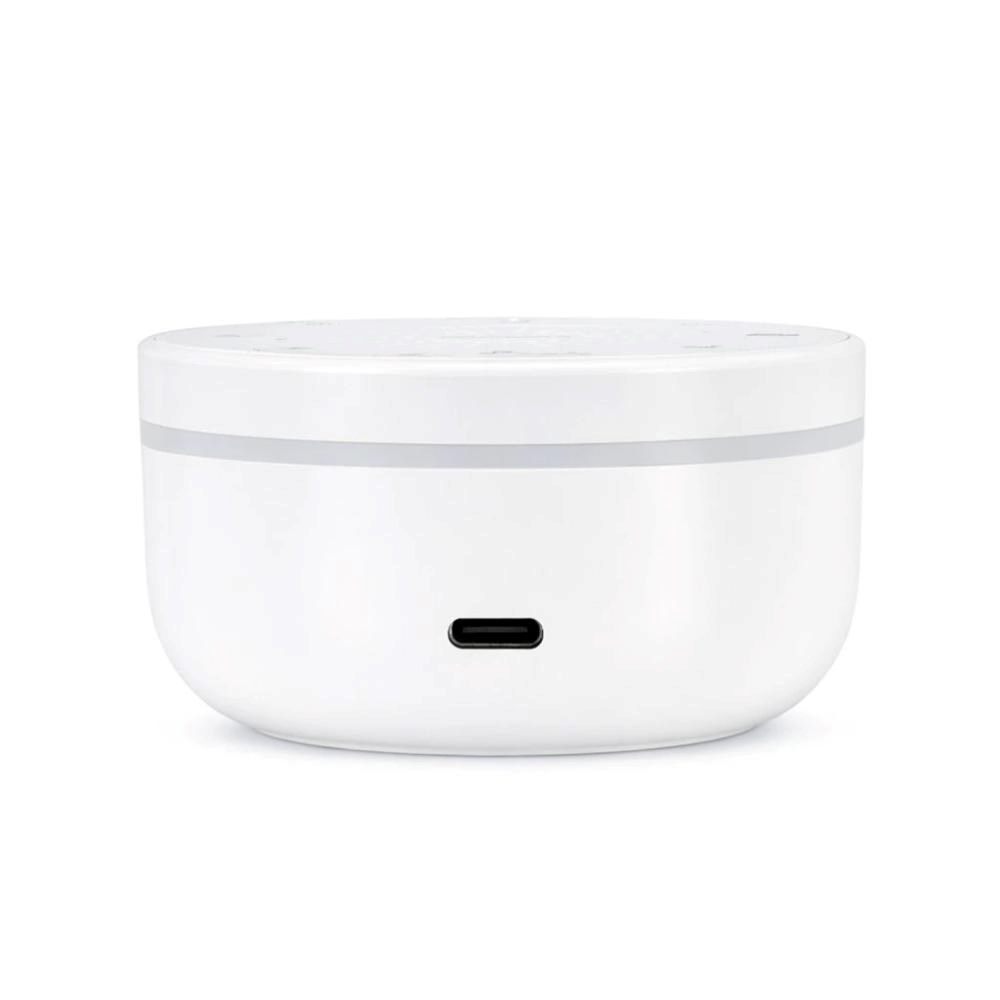 Přístroj v sobě skrývá vestavěnou baterii o kapacitě 1000 mAh, která zajistí provoz i bez připojení k nabíjecímu kabelu. Na jedno nabití zvládne provoz přibližně 6 až 8 hodin v závislosti na hlasitosti zvuku a intenzitě světla, nabíjení proběhne během cca 2,5 hodiny pomocí USB-C kabelu. Zařízení je tak ideální nejen do postýlky, ale i na cesty, do kočárku, na chalupu nebo při spaní v autě. Díky kompaktním rozměrům a nízké hmotnosti jej snadno vezmete kamkoliv s sebou.