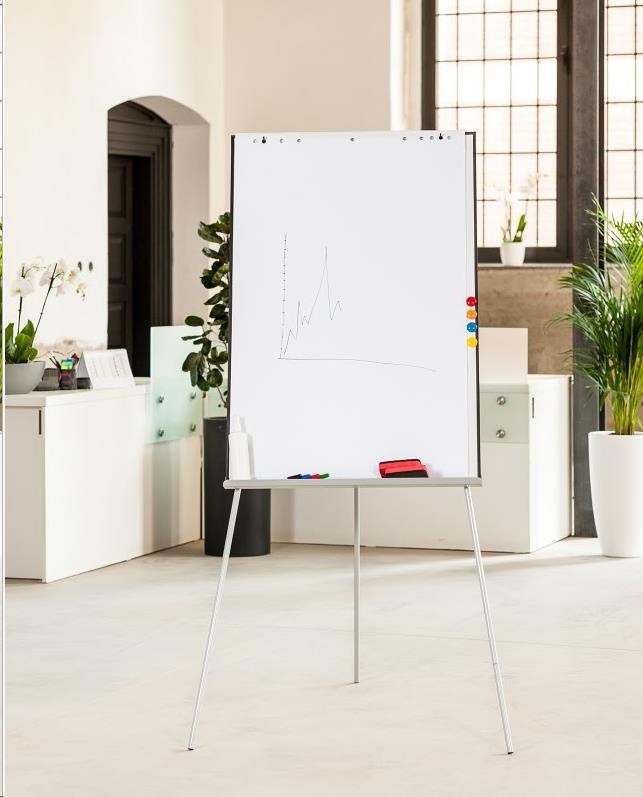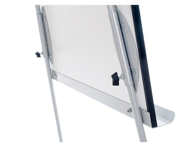 Flipchart s magnetickým povrchem. Flipchart disponuje bočními vyklápěcími lištami pro zavěšení potřebných materiálů. Rozměr: 70x100 cm Nastavitelná výška: 105 – 184 cm Povrch: magnetický Pevná odkládací lišta: ANO Dvě boční lišty Kolečka: Ne Posuvné háčky pro flip. papír: ANO Veškerý instalační materiál je součástí balení. , ,
