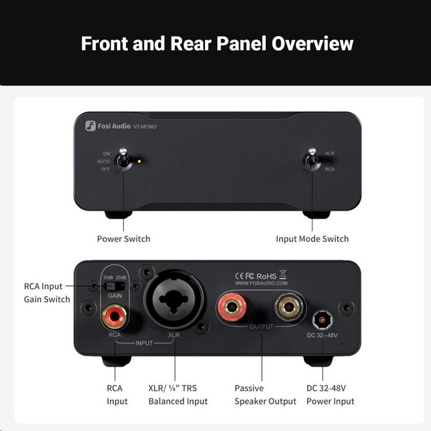 Fosi Audio V3 Mono je výkonný monoblok navržený pro nadšence domácího HiFi. Díky technologii třídy D s topologií Texas Instruments TPA3255 nabízí čistý, detailní a dynamický zvuk, který zvládne i náročné reprosoustavy. Kompaktní kovové šasi skrývá špičkové komponenty, které zaručují dlouhodobě stabilní výkon bez kompromisů.