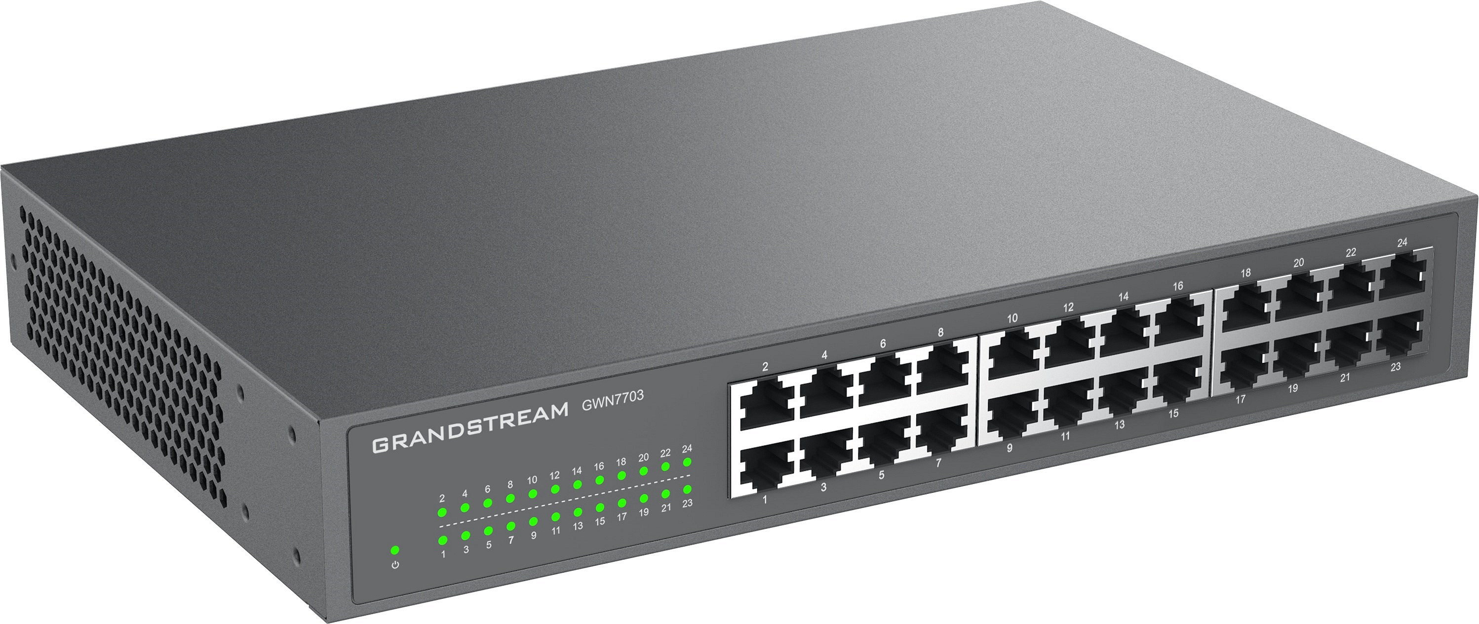 5/8/16/24/48 gigabitových portů RJ45, 4 porty PoE+ (GWN7700P a GWN7701P), 8 portů PoE+ (GWN7701PA a GWN7702P)