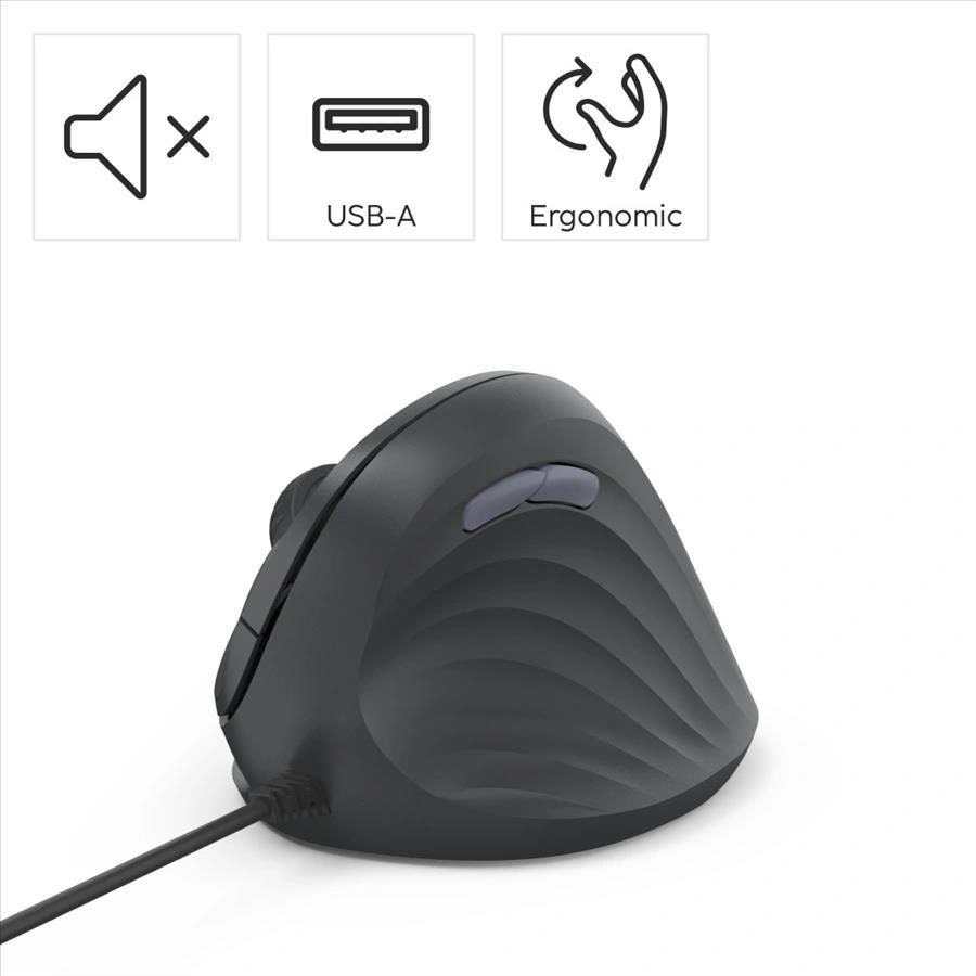 - moderní ergonomická kabelová myš pro pracování s počítačem bez bolesti - vertikální provedení předchází namožení a bolesti ramen a zápěstí - tichá, bez zvuků při klikání pro nerušenou práci - DPI tlačítko pro rychlou změnu rozlišení (DPI 1000/1400/1800) - aktivace AI asistenta v systému tlačítkem - tlačítka s funkcí zpět/vpřed v prohlížeči - pogumovaný povrch myši a kolečka - polymerové kluzné plochy - dlouhý kabel s připojením k USB-A nebo USB-C zásuvce (integrovaný adaptér) - tělo a tlačítka jsou vyrobena z 65% z recyklovaného ABS plastu - balení je 100% bez plastů Systémové požadavky: - běžné funkce: Windows 11/10, Mac OS 11 nebo novější - tlačítko Assist: Windows 11 s aplikací Microsoft Copilot Technické parametry: - připojení: USB-A vidlice, USB-C vidlice - počet tlačítek: 7 včetně rolovacího kolečka - rozlišení: 1000/1400/1800 DPI - délka kabelu: 1,8 m - rozměry: 8,6 x 11,5 x 7,1 cm - hmotnost: 110 g - barva: černá. , ,