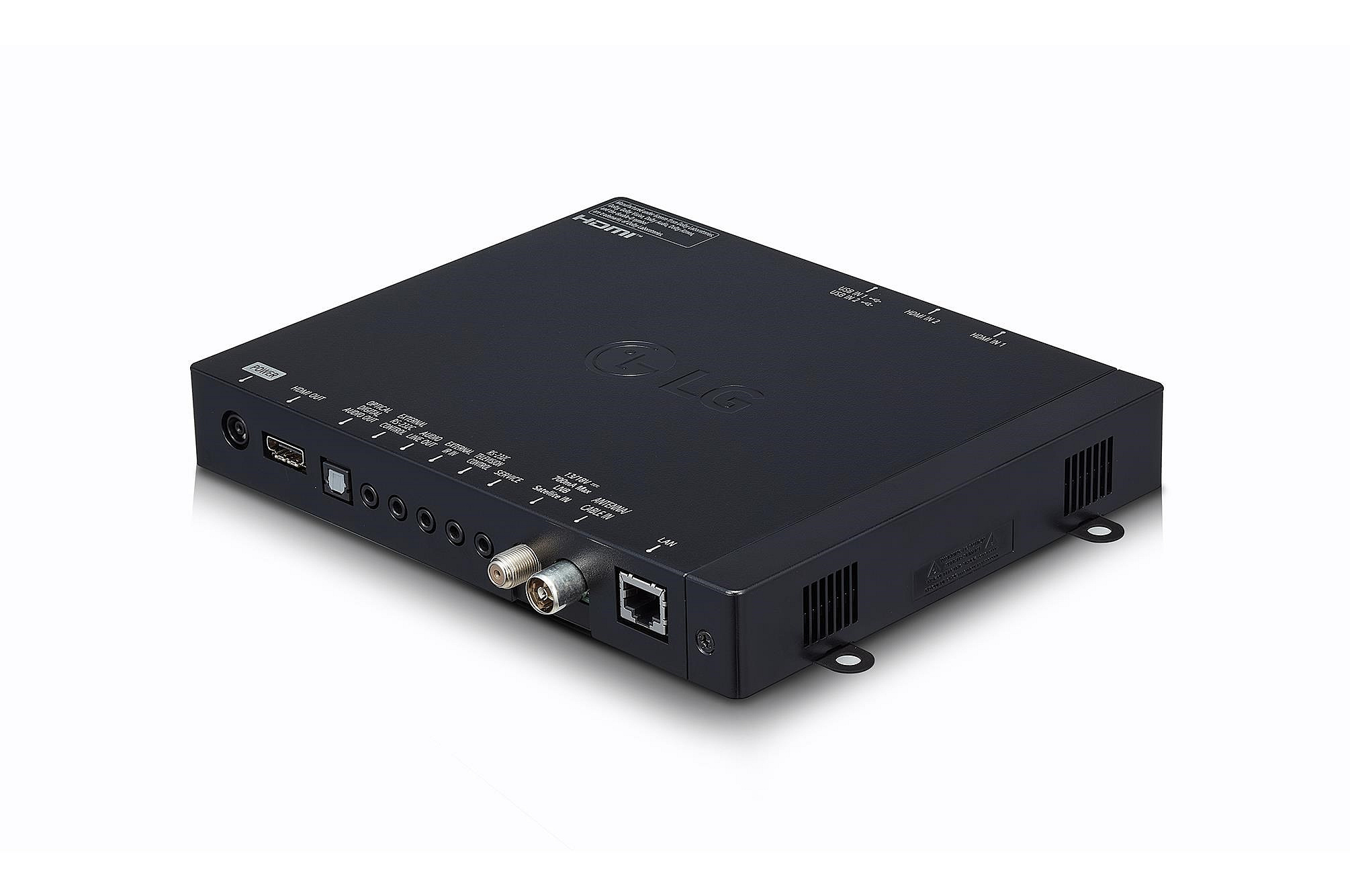 | Spodní zadní strana | Napájení, HDMI Out, Digitální audio výstup (Optický), Audio Line Out (Jack), Externí IR (Jack), RS-232C ovládání TV (Jack), Externí RS-232C ovládání (Jack), Servisní port, Vstup pro anténní kabel, LAN port |