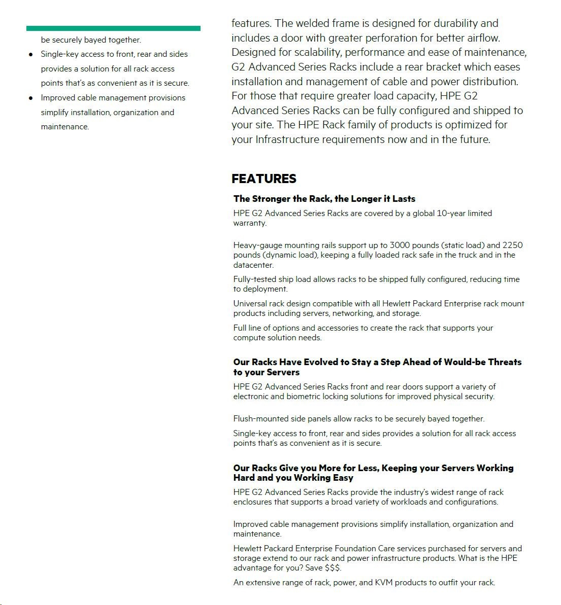 HPE 42U 600mmx1075mm G2 Kitted Advanced Shock Rack with Side Panels and Baying