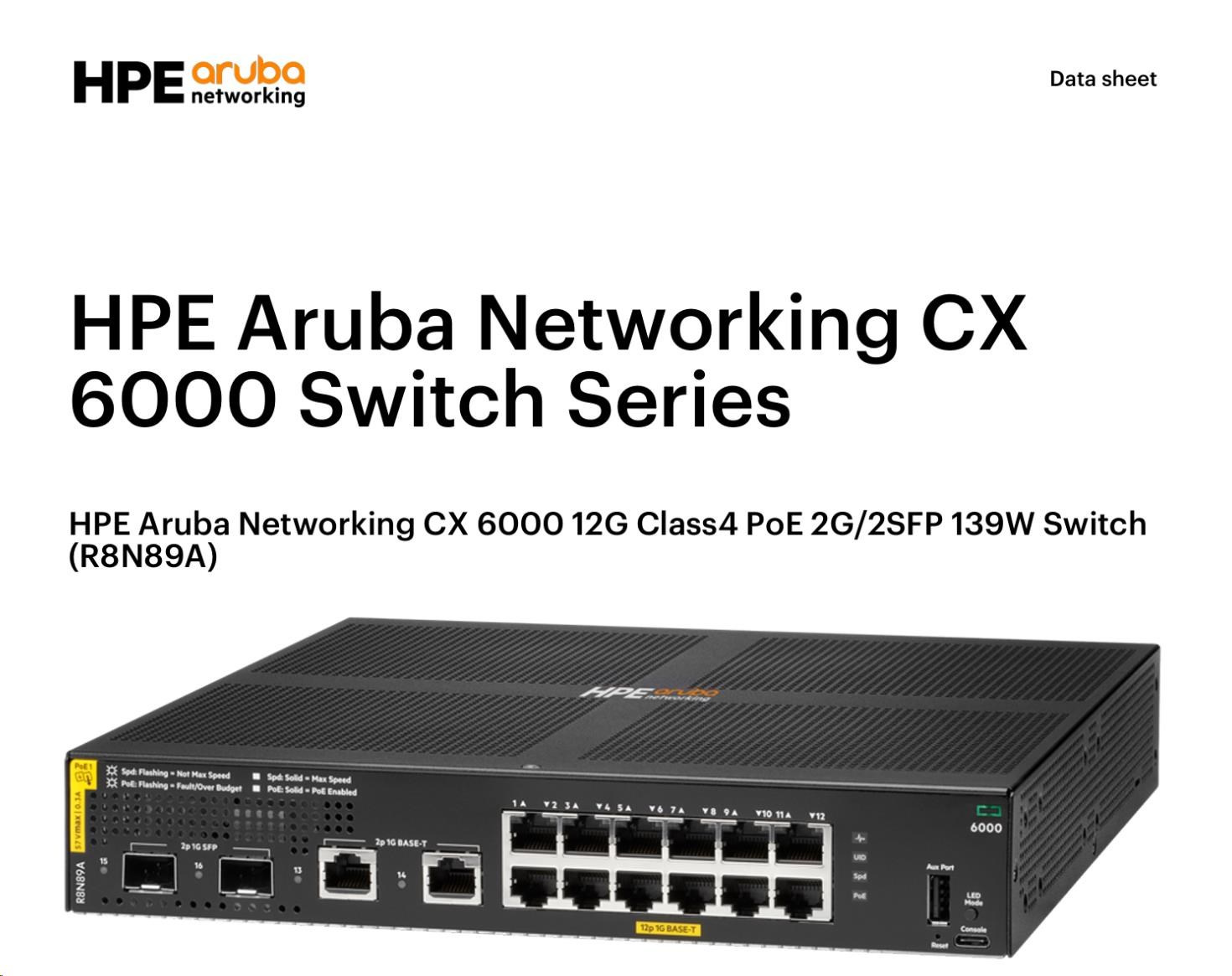 HPE Aruba Networking CX 6000 12G Class4 PoE