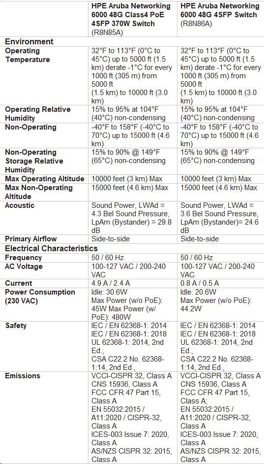HPE Aruba Networking CX 6000 48G 4SFP Switch