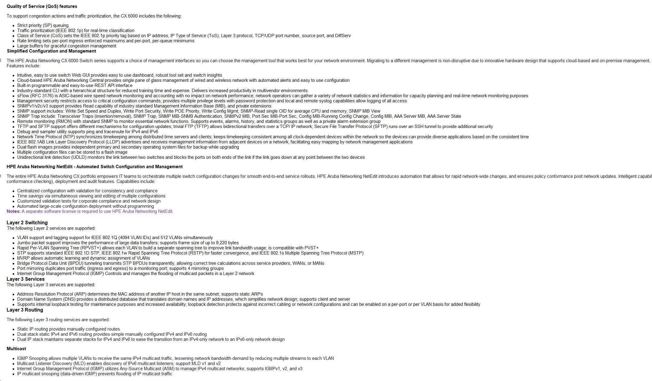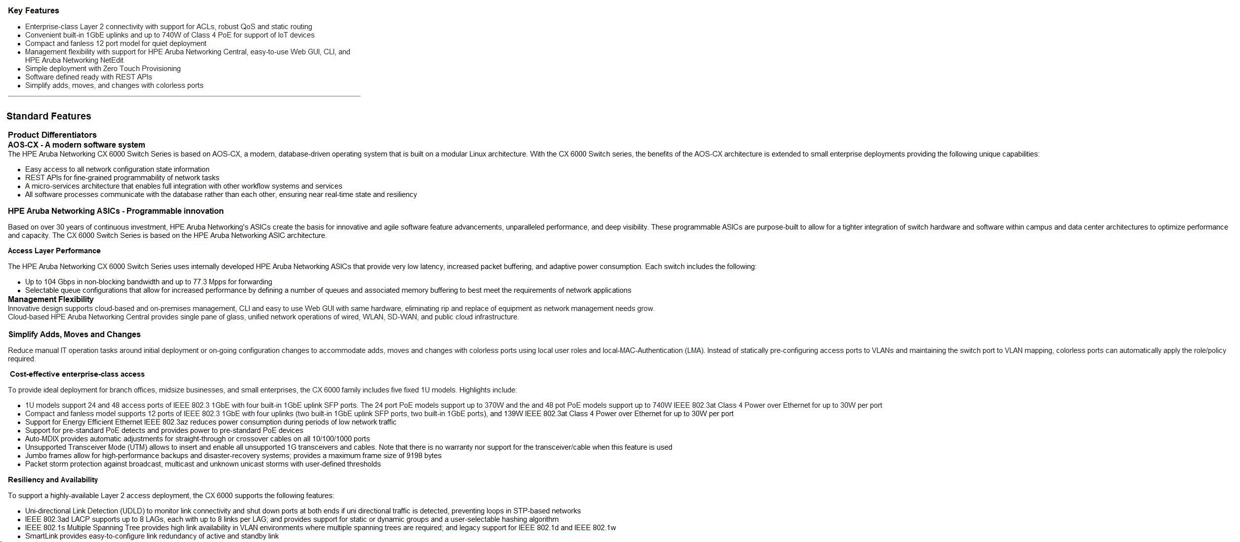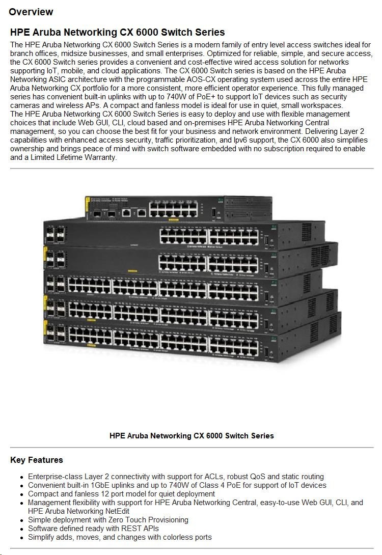 Popis HPE Aruba Networking CX 6000 48G 4SFP Switch R8N86A