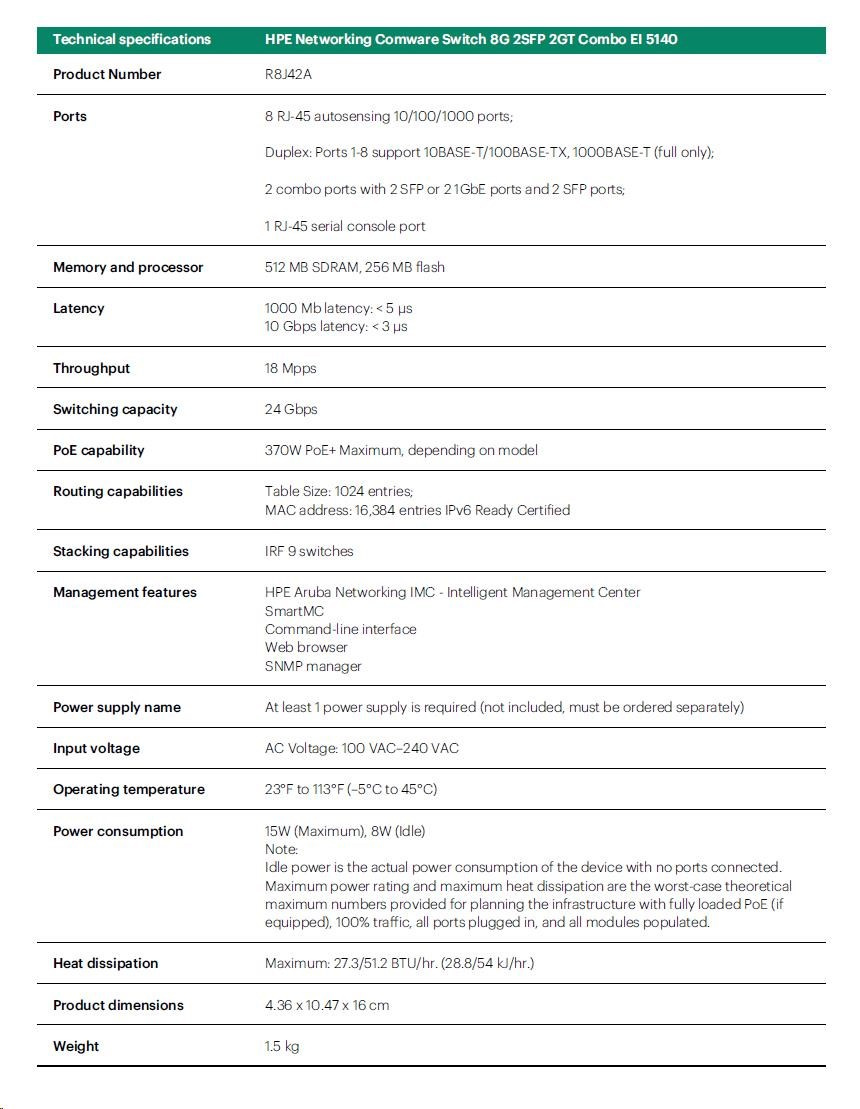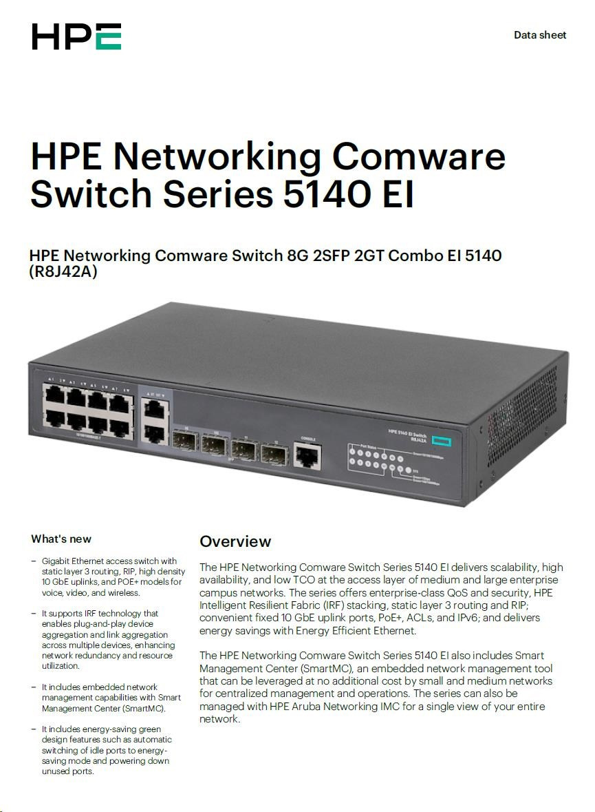 Provedení:Rack mounted 19"; Funkce:QoS (Quality of service), VLAN (virtual local area network), DHCP snooping, L3, Web management/Smart switch; Technologie:Gigabit Ethernet 1000Mbps; Počet portů LAN:8; Počet portů LAN:8; Počet SFP portů:2; Počet SFP portů:2; Počet portů Combo:4; Počet portů Combo:4; Maximální počet portů:8; Přenosová rychlost LAN (Mb/s):95.Více