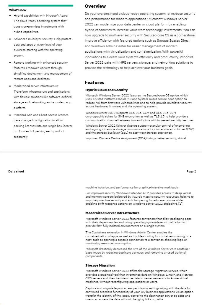 HPE Microsoft Windows Server 2022 Datacenter Edition ROK 16Core No Reassignment Rights CZ EN PL RU SV