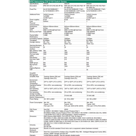 HPE Networking CW 2150 24p 10M/100M/1G 4p SFP+ 1G/10G Switch