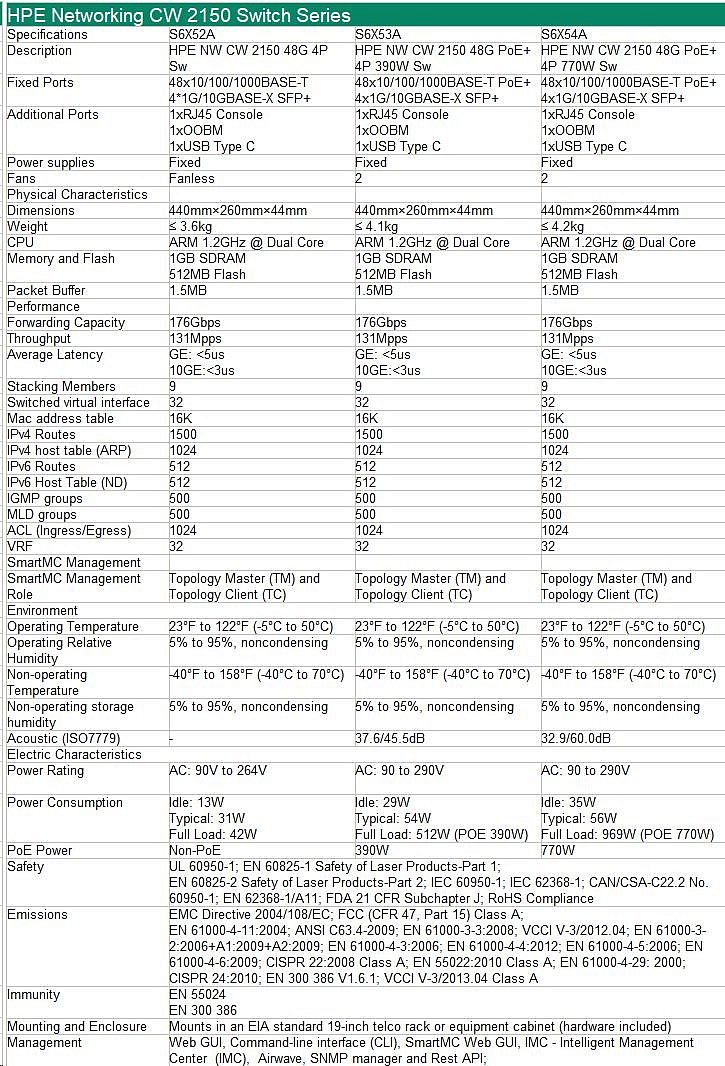 Diskuze k produktu HPE Networking CW 2150 48p 10M/100M/1G PoE+ 4p SFP+ 1G/10G 770W Switch