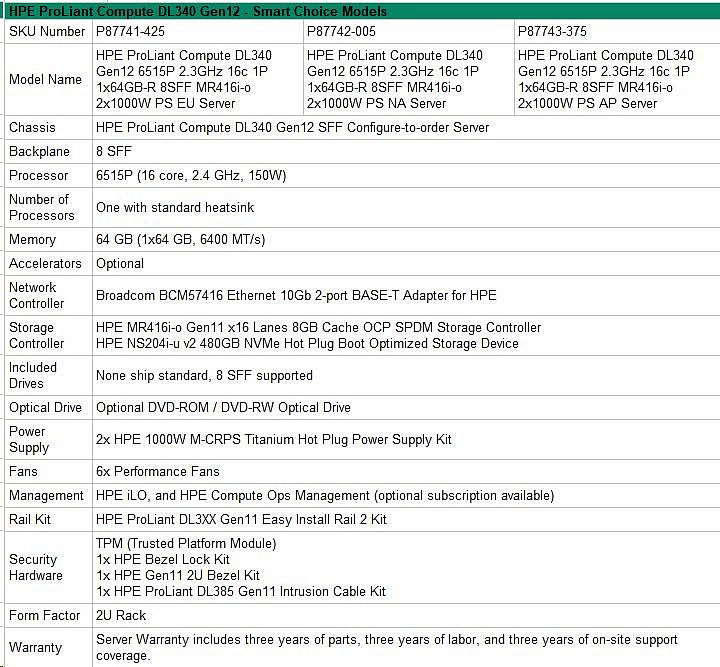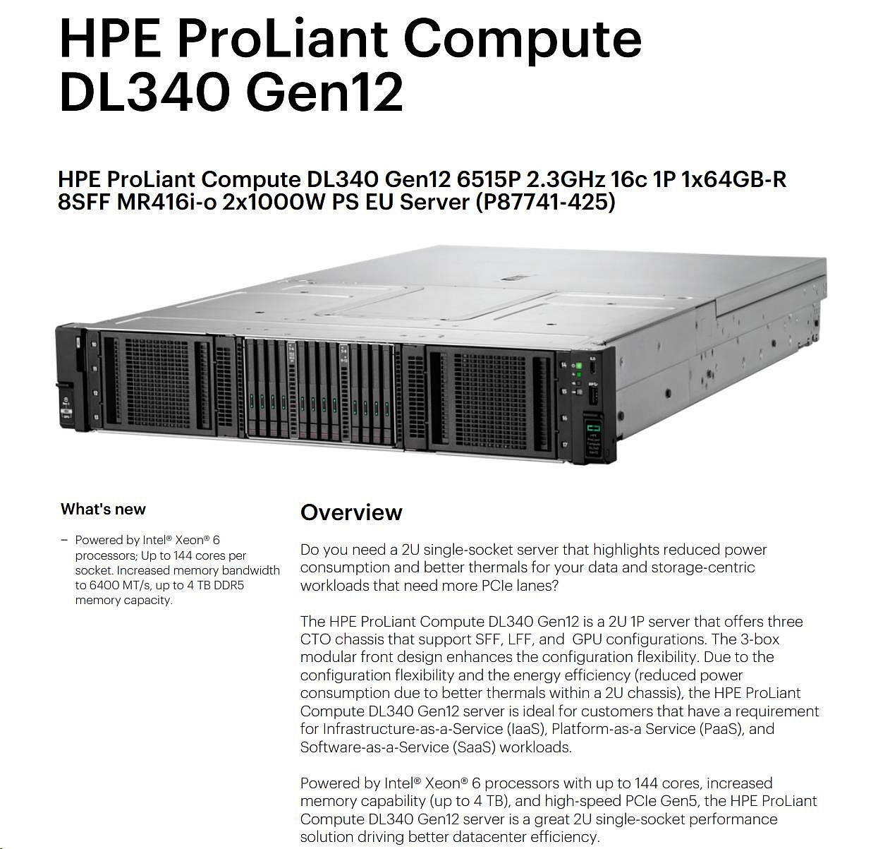 HPE PL DL340g12 6515P (2.4/16C) 1x64G (P69728) NS204(2x480) MR416i-o 8SFF 2x1000W 2p10Gsfp+ PerfFans NBD333 Smart Choice