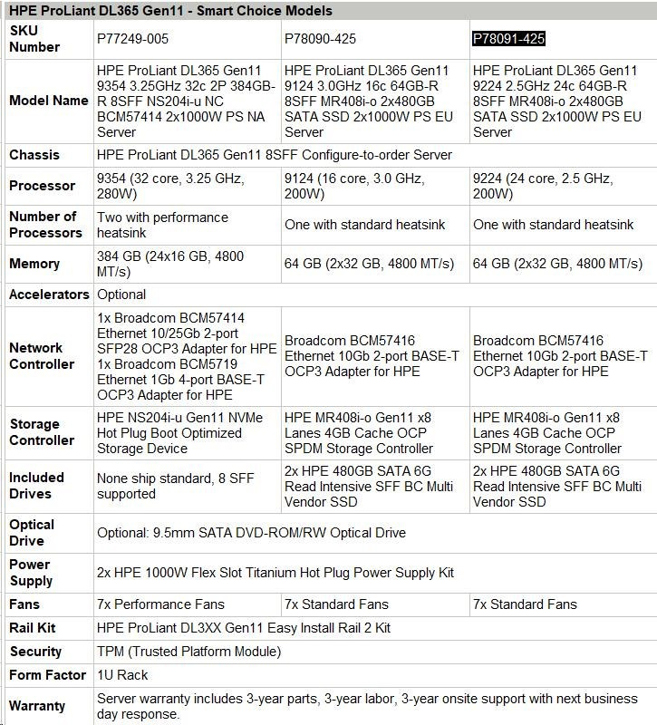 HPE PL DL385g11 AMD EPYC 9115 (2.6/16C) 2x32G (P64985) 2x480G MR408i-o 2x1000W 8SFF 2p10GT Smart Choice