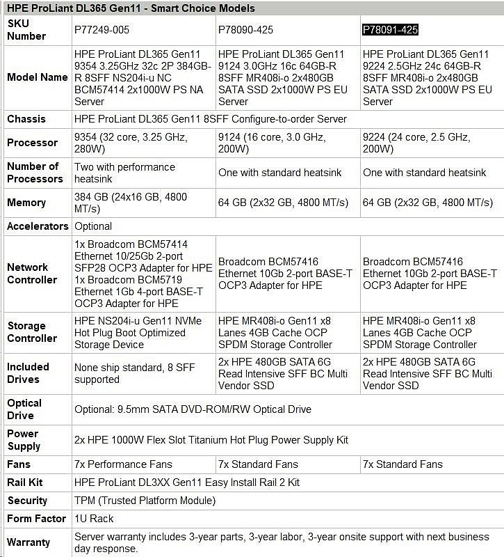 HPE PL DL365g11 AMD Epyc 9224 (2.5/24C) 2x32G 2x480G MR408i-o/4G ocp2p10G-T 8SFF 2x1000W 1U Smart Choice P78091-425