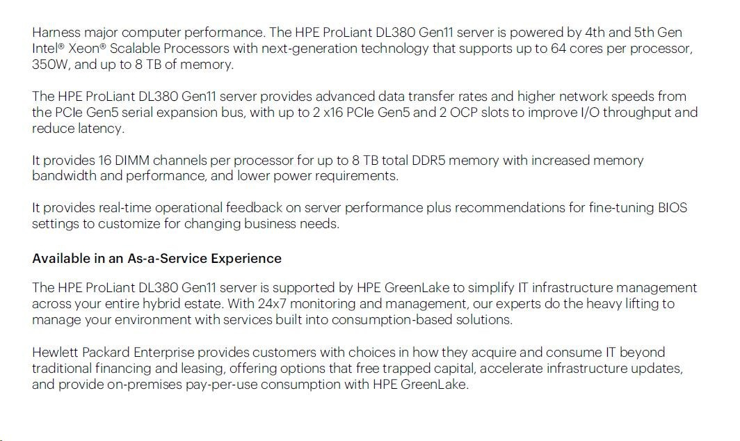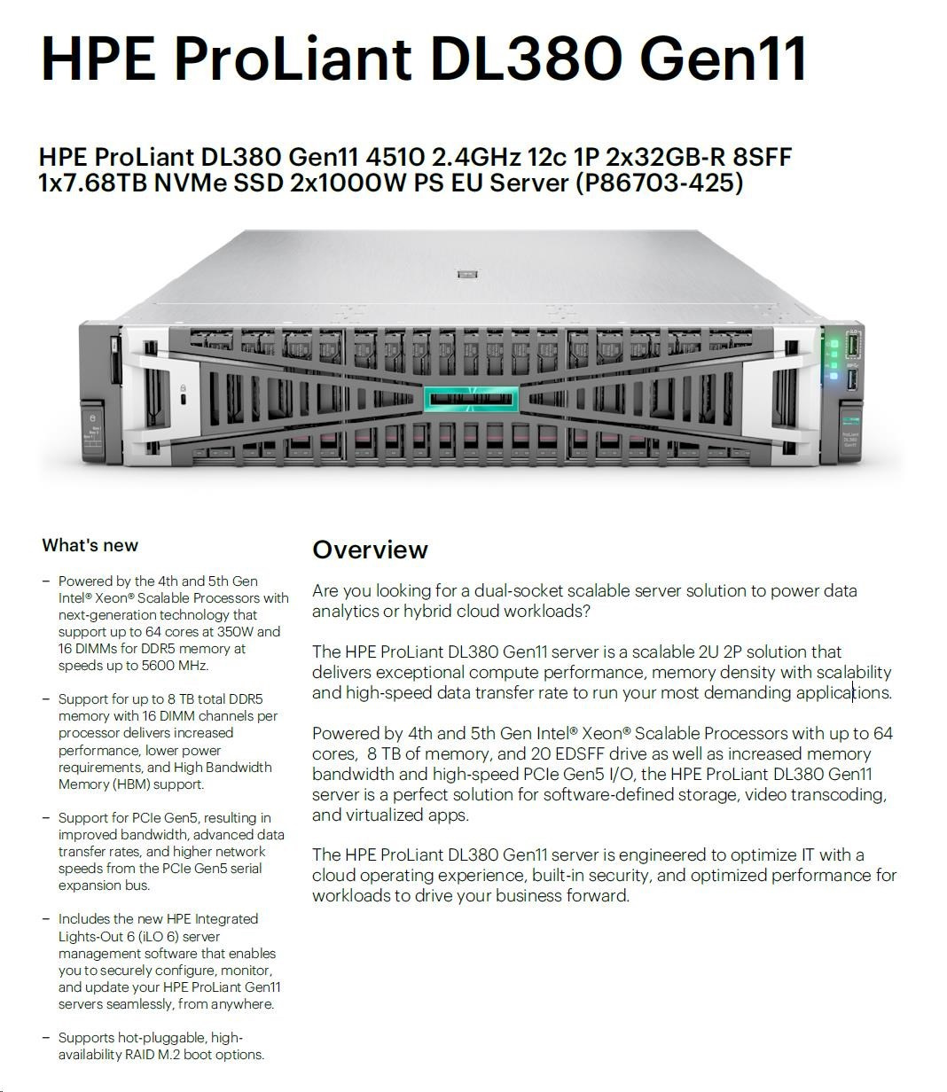 HPE PL DL380g11 4510 (2.4G/12C) 2x32G (p64706) 1x7.68TB (P64848) 2x1000W 8SFF VROC 8NVMe(P48825) 4p1G HPF Smart Choice