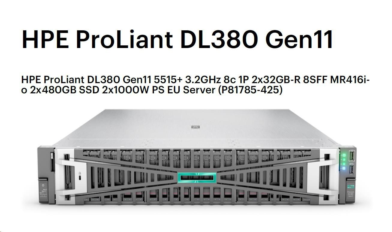 HPE PL DL380g11 5515+ (3.2/8C) 2x32G (p64706) MR416i-o/4G 2x480G 2x1000W 2x10G-T Smart Choice