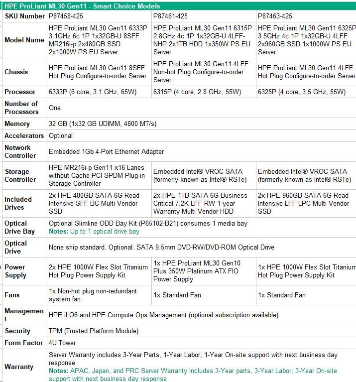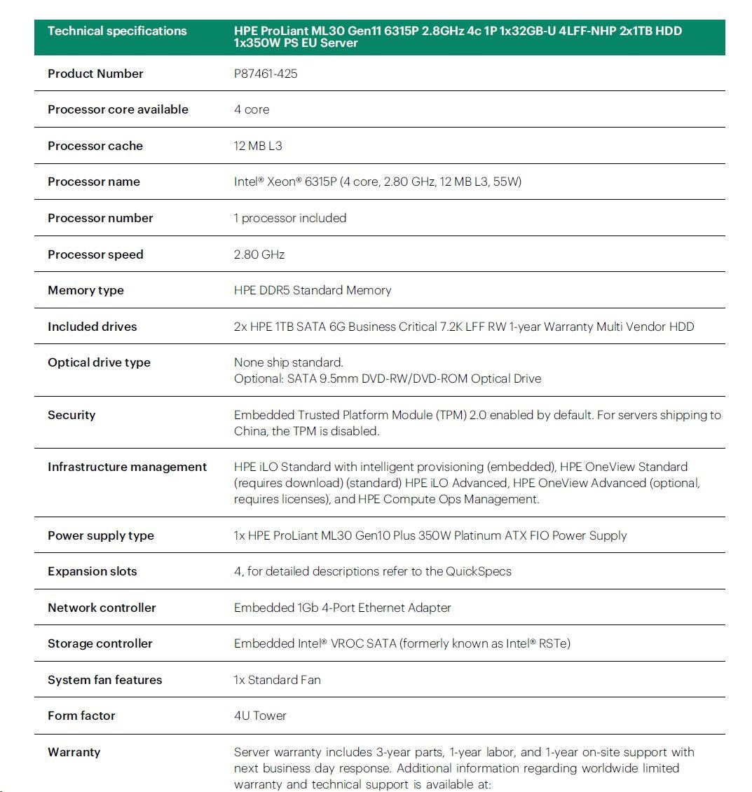 Provedení serveru:Tower; Výrobce CPU:Intel; Maximální počet procesorů:1; Řada procesorů:Intel 4 Core Xeon; SSD Kapacita (GB):960, 960; Model procesoru:Intel Xeon E-2434; Velikost paměti RAM (GB):32; Maximální paměťová kapacita serveru (GB):128; Maximální počet slotů PCIe:4; Maximální počet HDD v serveru:4; Hot-plug cage pro HDD:3.5" LFF; RAID:1, 5, 10.Více
